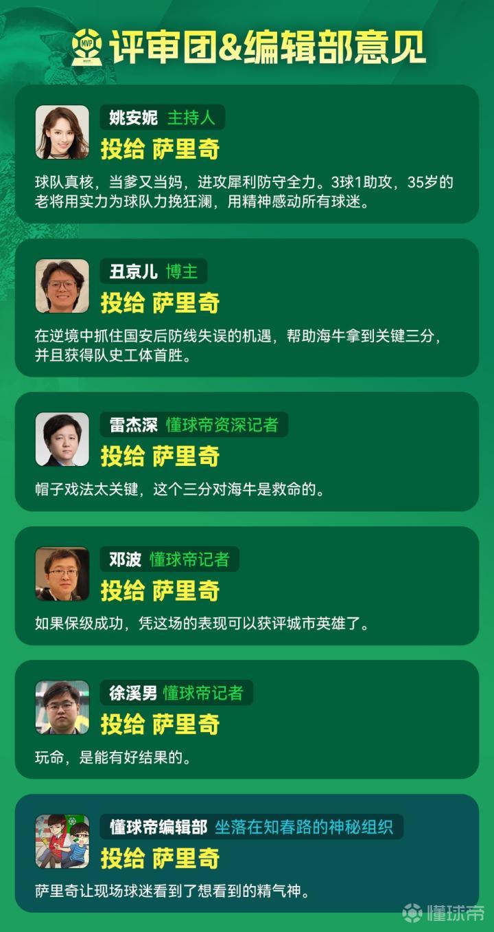 本轮中超赛事中,面对上海海港梅开二度的瓦科同样展现出色状态,赢得众多球迷支持。然而经过评审团与编辑部的综合投票,萨里奇最终以更高得票率反超瓦科,首次荣膺中超MVP称号。